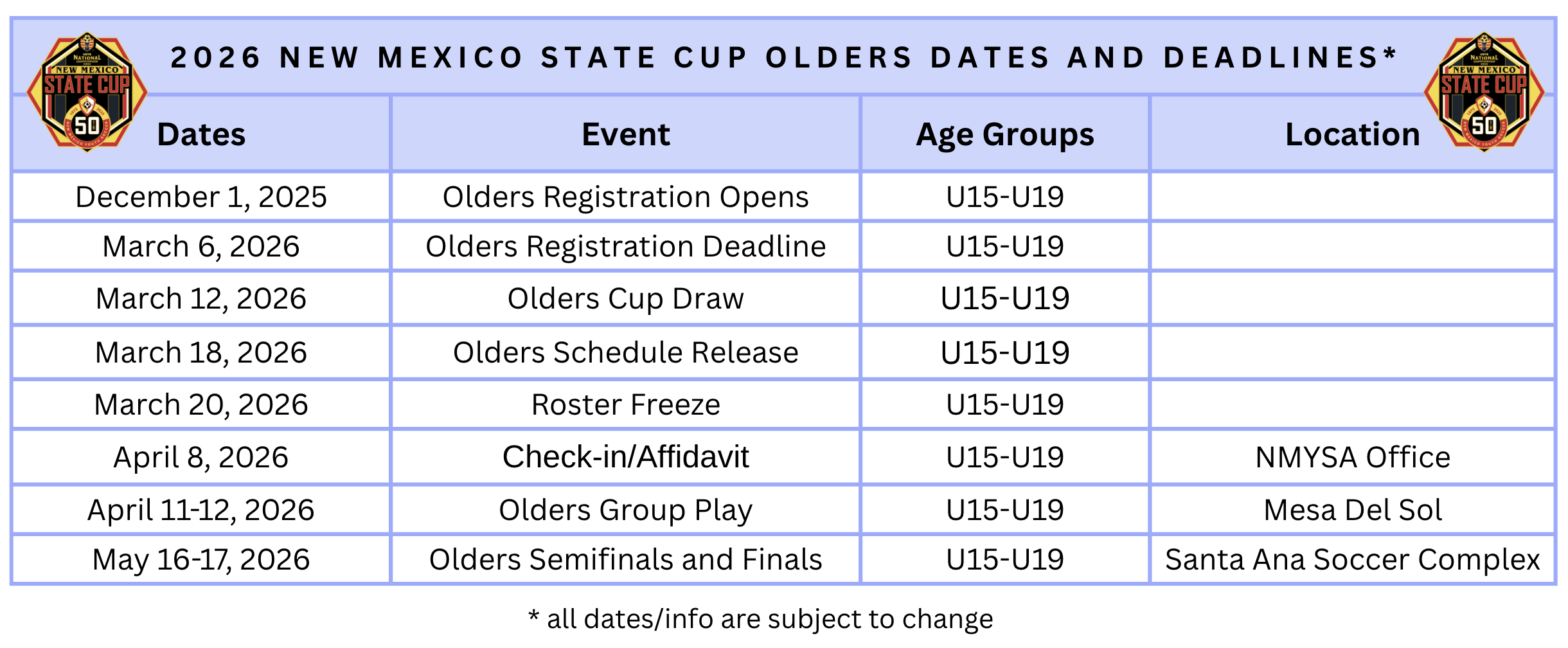 2026 New Mexico Open State Cup – Part of the US Youth Soccer National Championship Series (State, and National competitions)*